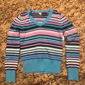 Vintage Old Navy Girls Large 10-12 Colorful Long Sleeve Y2K V Neck Sweater