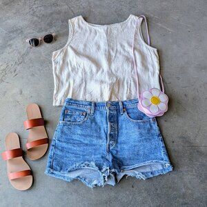 Vintage Old Navy Ivory Linen Cropped Tank Top large