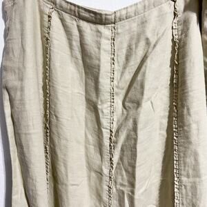 Vintage Old Navy Maxi Skirt Womens Sz 14 Y2K 100% Linen Ruffle Coastal Boho Tan