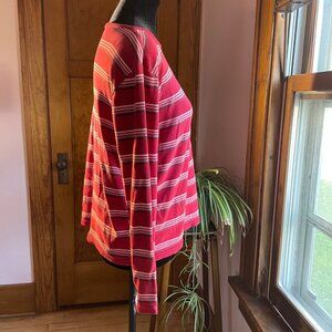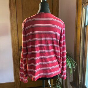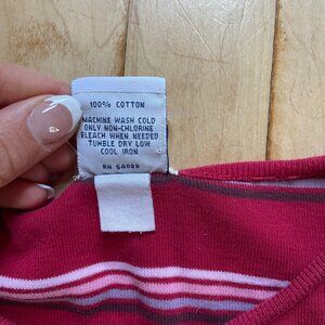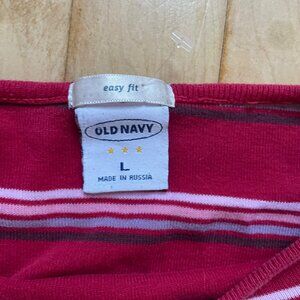 Authentic vintage Old Navy striped long sleeve tee from the late 1990s/early 2000s. Rare “Made in Russia” production with red, pink, white, and black stripes. A true mall brand Y2K essential.