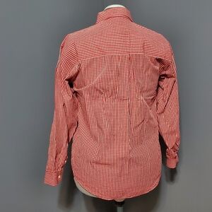 Vintage Old Navy women's red and white plaid, button-down shirt. The tag in this shirt says XXL but fits more like a Large. This top has been starched.