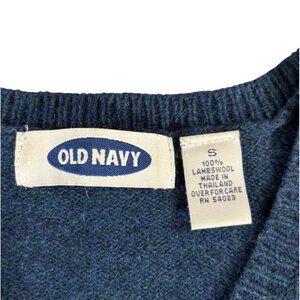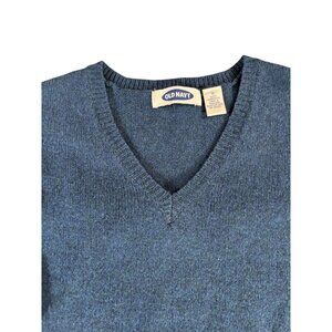 Vintage Old Navy Womens V-Neck Sweater 100% Lambswool Blue Long Sleeve Small