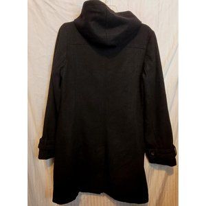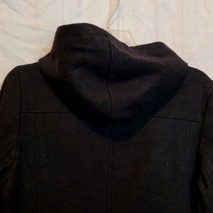 Vintage Old Navy Wool Blend Pea Coat Hood Black Long Button Up Medium Pockets