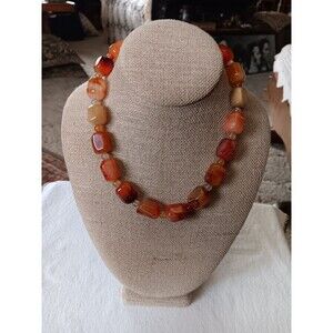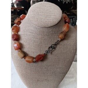 Vintage Old Pawn 17" large stone carnelian necklace sterling silver