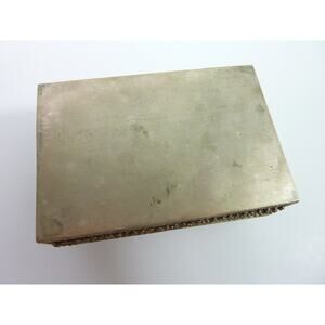 Beautiful intricate filigree metalwork box, there is over all tarnishing but the bottom is silver in color still.