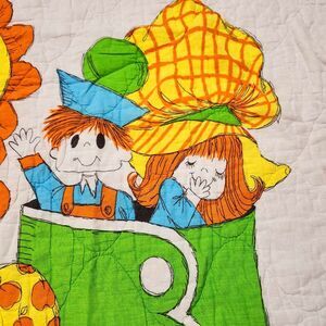 Vintage Old Woman Who Lived in a Shoe Quilt Baby Nursery Rhyme Blanket Decor