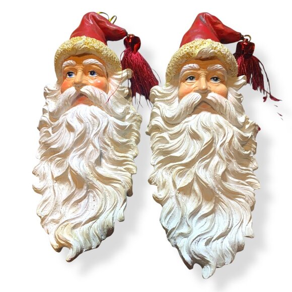 Vintage Old World Santa Claus St. Nikolas Ornaments x 2 White Long Beard 6" Long