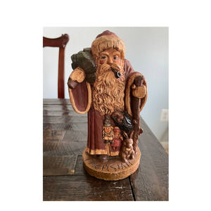 Transport yourself to the enchanting spirit of Christmas with this Vintage Old World Santa Figurine from 1989. This hefty figurine, complete with a tree and cane, isn't just a decoration; it's a nostalgic journey to the heartwarming traditions of yesteryear.