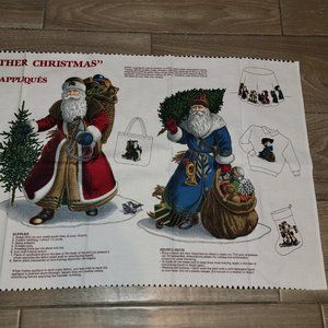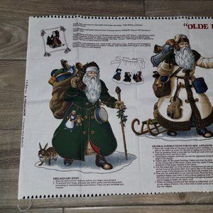 Vintage Olde Father Christmas Applique Cranston Print Works Fabric Cotton Panel