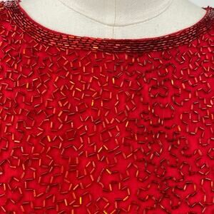 Vintage Oleg Cassini Beaded Silk Mini Dress Short Sleeves Cocktail Red Womens 6