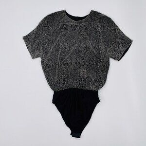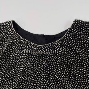 Vintage Oleg Cassini Black Tie Beaded Bodysuit | Size S-L