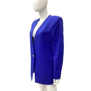 Vintage Oleg Cassini Blazer Women’s Size 12 Gold Tone Buttons Sapphire Gorgeous!