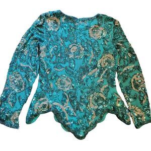 Vintage Oleg Cassini Blouse Women's Small Sequin Beaded Mermaid Cocktail Party