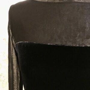 Black velvet body with sheer mesh shoulder and sleeves