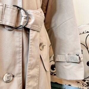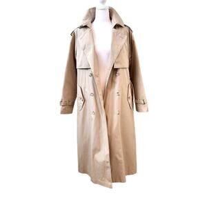 Vintage Womens Long Tan Trench Coat made in Hong kong.