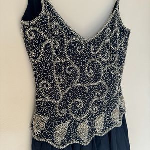 Fitted bodice with true a-line flare with skirt (some loose threads but all beading seems to be in tact)