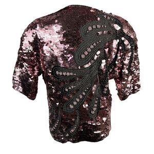 Vintage Oleg Cassini Rose Gold Pink Sequins Silk Formal Blouse Small Pearl Beads