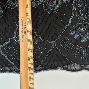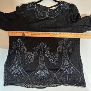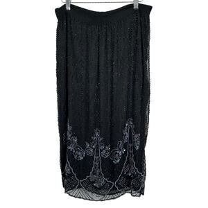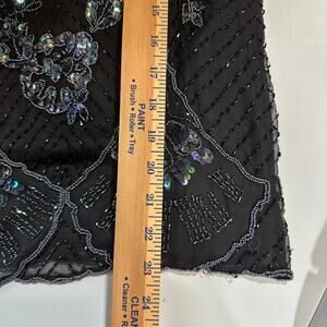 Vintage Oleg Cassini Silk Beaded Sequin Top Skirt Set Black Size 10 Gatsby Flapper