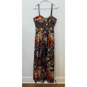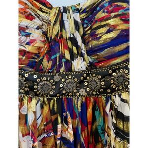 Vintage Oleg Cassini Silk Maxi Dress Gown Multicolor Metallic Beaded Eclectic 10