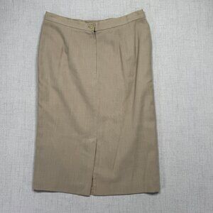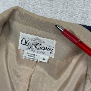 Vintage Oleg Cassini Skirt Suit Set Beige Navy Trim Pencil Straight Size 16