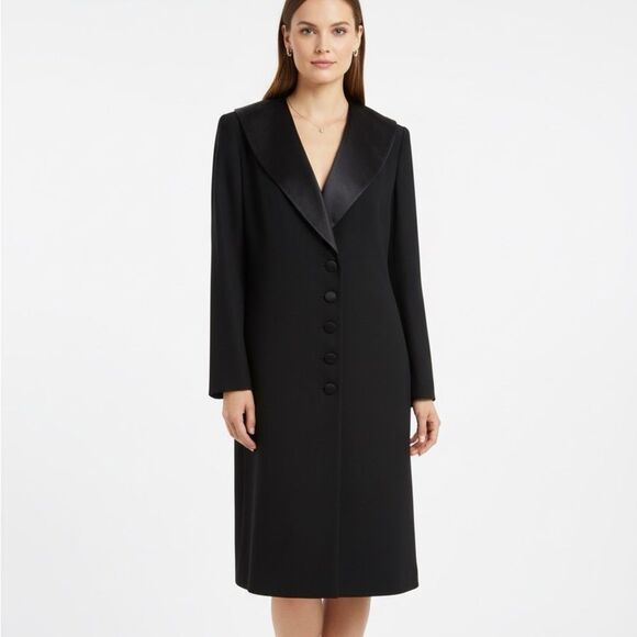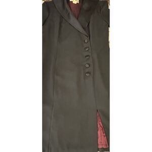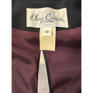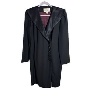 Vintage Oleg Cassini Studio Black Dress Coat Size 12 Purple Lining Made in USA