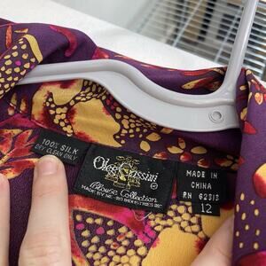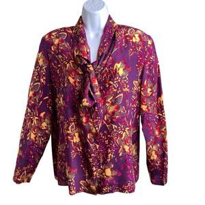 Vintage Oleg Cassini Women's Silk Floral Tie Neck Blouse Size 12 Secretary Retro