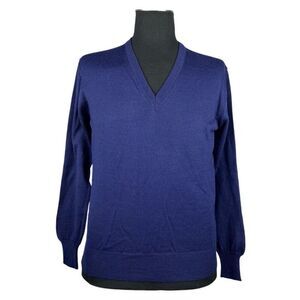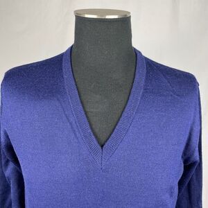 Vintage Oleg Cassini Wool V-Neck Navy Blue Sweater - Men’s L