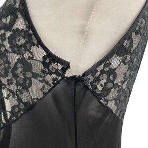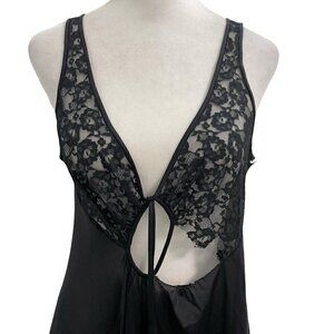 Vintage Olga Full Sweep Lace Keyhole Long Nightgown 9635 Black size Medium/Large