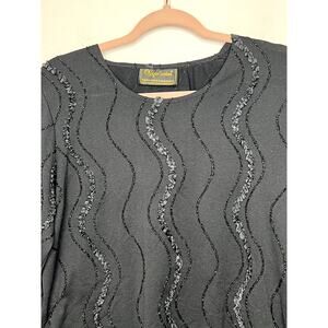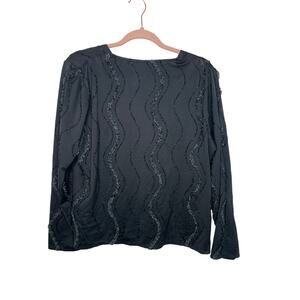 Vintage Olga Santoni Black Long Sleeve Pullover Embellished Blouse Top Size L