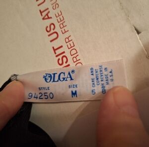 The robe is made by Olga. 100% nylon. Made in USA. Detachable sash. Black. 54 inches in length.