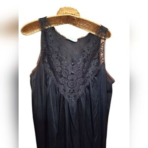 The gown is Vassarette - medium. Sleeveless. Heavy lace details. Button accent. 20 inches pit to pit