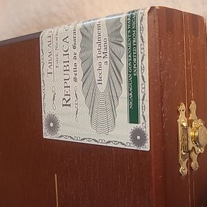 Vintage empty cigar Box 9" By 6". Almost an inch and a 1/2 deep. Beautiful darker wood. From Nicaragua. Minor scratch on front note pictures. Clasps on front of Box are gold color.