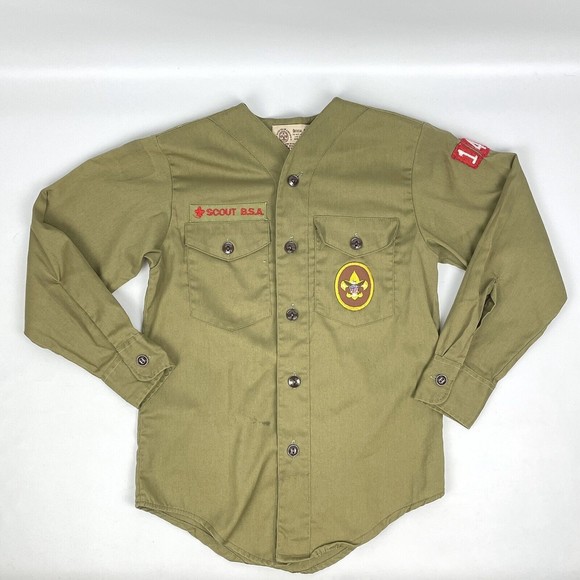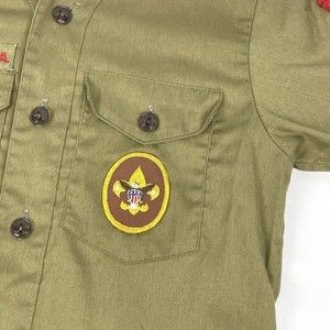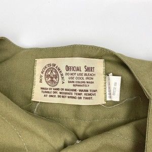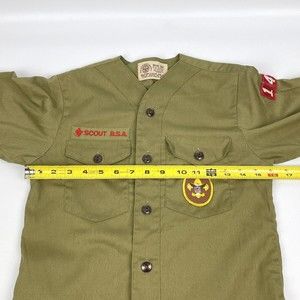 Vintage Olive Green BSA Boy Scout Uniform Shirt Long Sleeve 12 Neck Tenderfoot