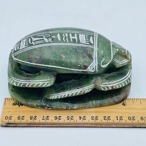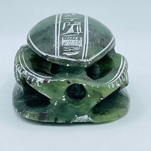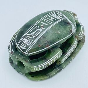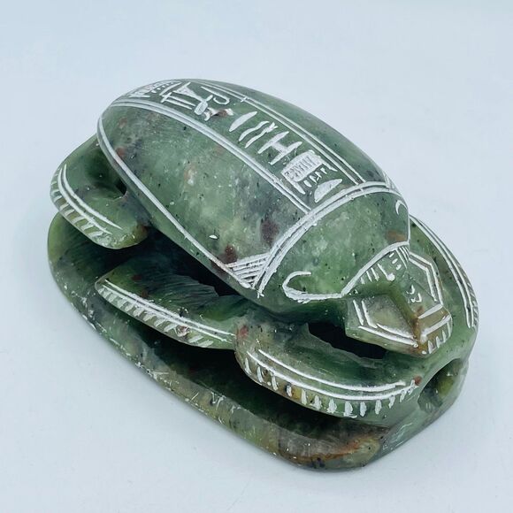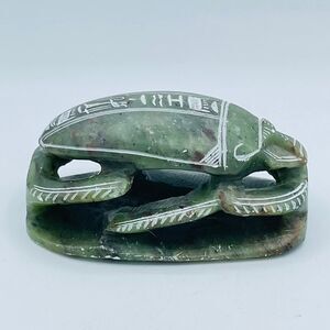 Vintage Olive Green Hand Carved Ancient Egyptian Soapstone Scarab Beetle Unique