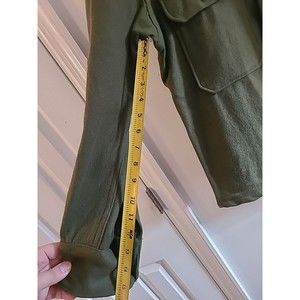 This vintage Olive green wool shirt jacket is a must-have for any fashion-conscious man. It is made of high-quality wool and has a solid pattern that gives it a classic look. The jacket is available in size M and has a regular size type that can fit most men comfortably. The jacket is perfect for those who love military-style clothing.