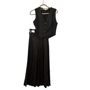 Vintage Olivia Rhodes 2 Piece Set Vest & Midi Skirt 100% Silk Olive Pin Striped