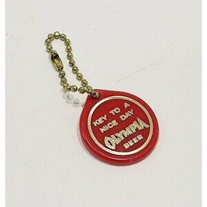 Vintage Olympia Beer Keychain Plastic Gold Red Oly Key Chain Key To A Nice Day