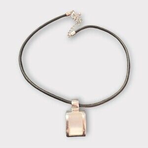 Vintage Oman Quartz and Silvertone Pendant on Corded Necklace