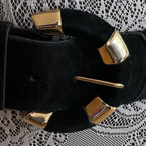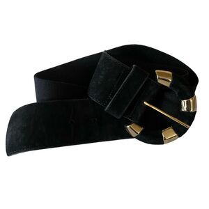 Vintage Omega Stretch Belt With Gold Accents. Features suede & gold buckle rounded buckle. Expanse of belt is stretchy fabric. Material is suede where the holes & belt tip holder is. Condition is consistent with vintage age including some wear to the suede material where it is a bit thin. Size M/L. Approximate measurements lying flat: 37” total length from end to end, 2” W & 32.5” distance to the shortest length & 34.5” distance to the furthest hole. Please message me prior to purchasing a bundle. #vintage #suede #belt #80s #glam