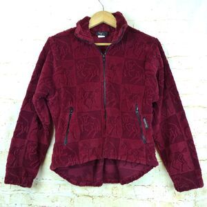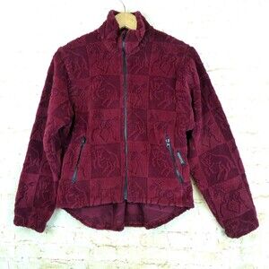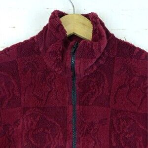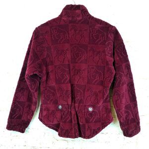 Vintage On Course Sherpa Fleece Jacket Womens S Red Horse Motif USA 80s 90s