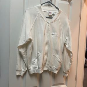 On Your Mark vintage white golf jacket, size M, 23 in length, 100% cotton side front zipper pockets and zip pocket at top, front zip