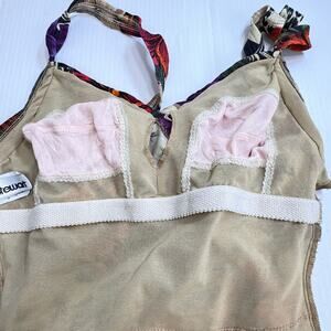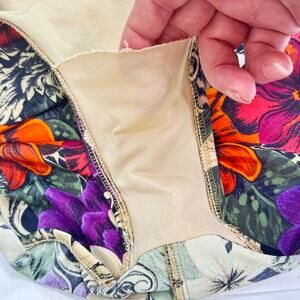 Vintage One Piece Tropical Floral Swimsuit 8 Surplice Pinup Beach Babe Resort