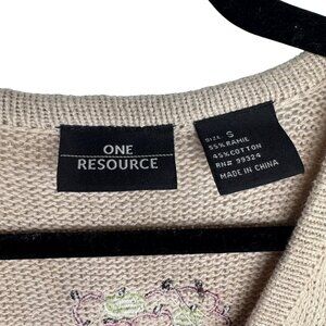 Keywords: vintage sweater vest, embroidered vest, sleeveless knitwear, One Resource vest, ramie cotton vest, button-up vest, beige sweater vest, bird embroidery vest, women’s casual vest, unique design vest, small size vest, birdhouse design vest, lightweight layering vest, birdhouse lovers