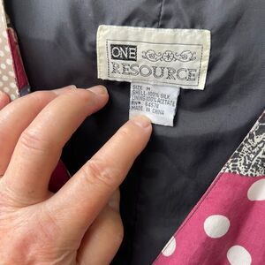 Vintage One Resource size M silk faux patchwork button front vest. Acetate fabric lined. Gently worn.