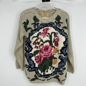 Vintage One Step Up Womens Chunky Sweater Size M Hand Knit Floral Graphic Boho