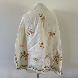 Vintage One of a kind Embroidered Scarf Tapestry Linen Crotchet
