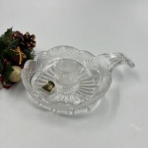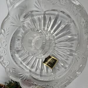 Vintage Oneida Crystal Candle Stick Holder Etched Glass Christmas Greenery