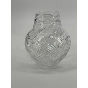 Vintage Oneida Santa Mesa Crystal Vase Crosshatch Dot Pattern 8 Inches