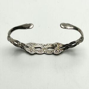 Elegant and timeless, this vintage silver-plated cuff bracelet by Oneida features intricate pierced scrollwork in a graceful, romantic design. Likely produced between the 1960s–1980s, this piece captures the charm of heirloom-style jewelry with a lightweight, feminine silhouette.