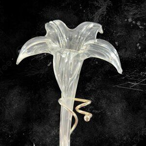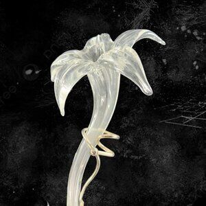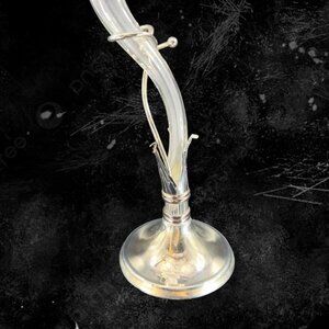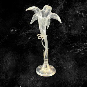 Vintage Oneida Silverplate Amaryllis Clear Flower Shaped Vase On Metal Base VTG